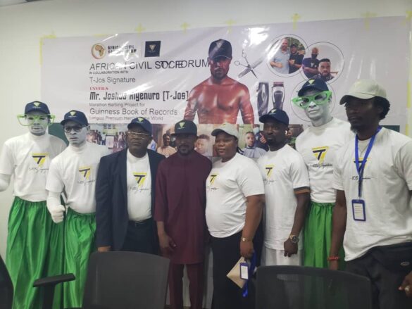An African Youth from Nigeria by name AIYENURO JOSHUA has been unveiled by the African Civil Society Forum (AFRICSOF) in collaboration with T-Jos Signature TO set Guinness World Record for the Longest Haircut Marathon in the World.